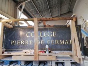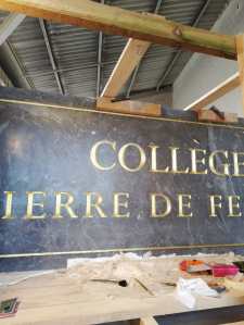 Remise en or du lettrage de la plaque de façade du Collège