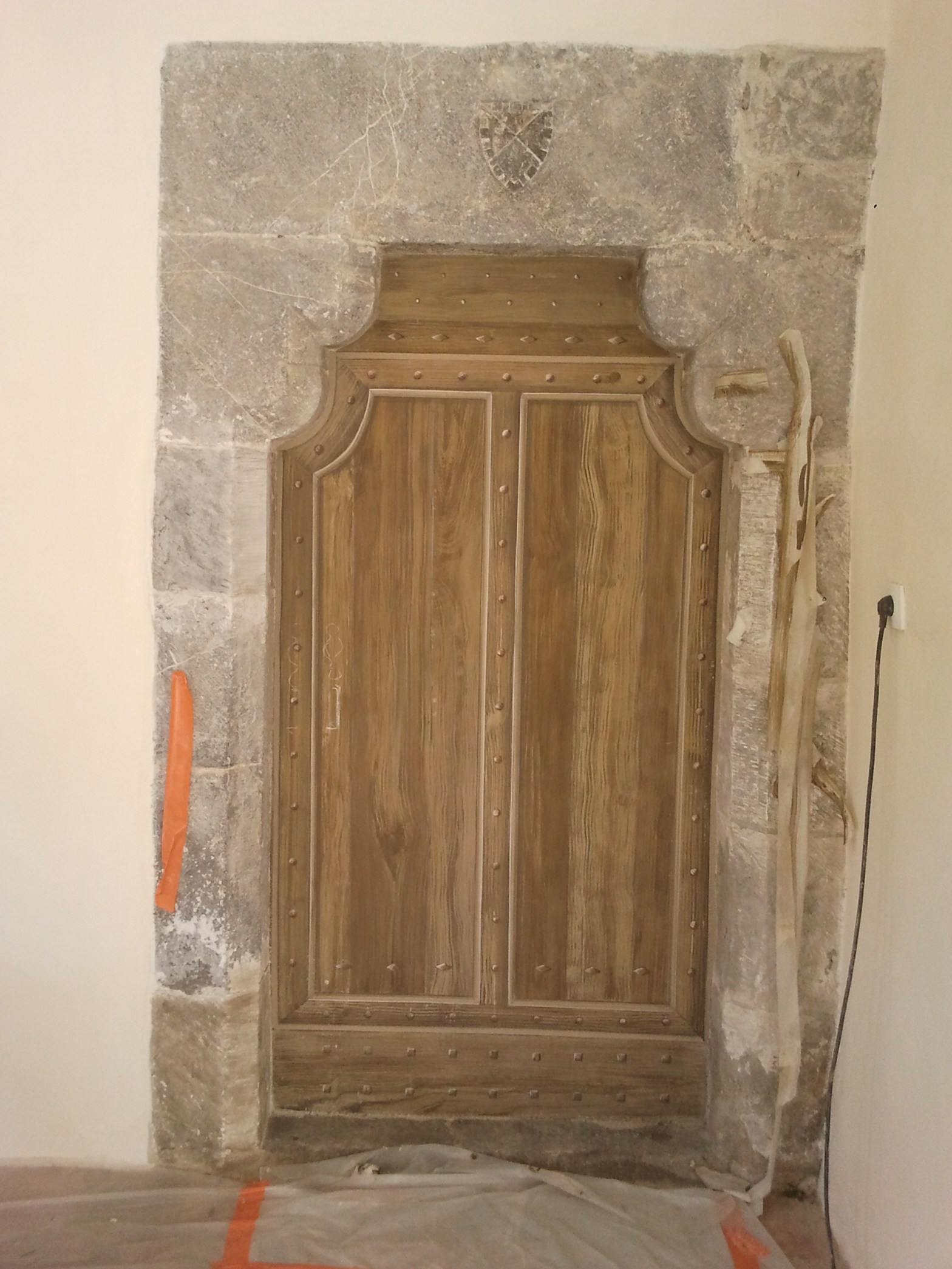 Réalisation de faux marbre sur les colonnes d’apparat du seuil d’entrée du château