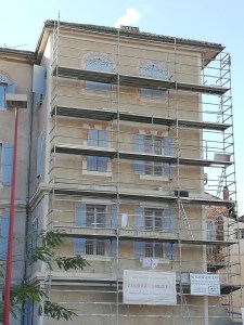 Réalisation du décor en trompe-l’oeil de fausses fenêtres de la façade réhabilitée – Conception du cabinet d’architecte