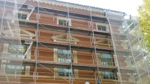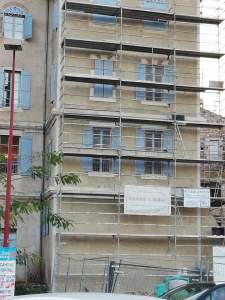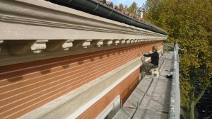 Travaux de rénovation et de restauration des façades du TGI mise en or des dorures des grilles de clôture
