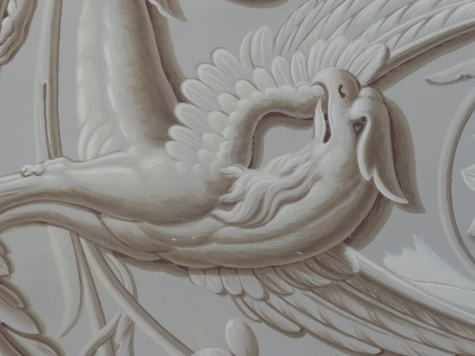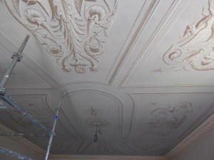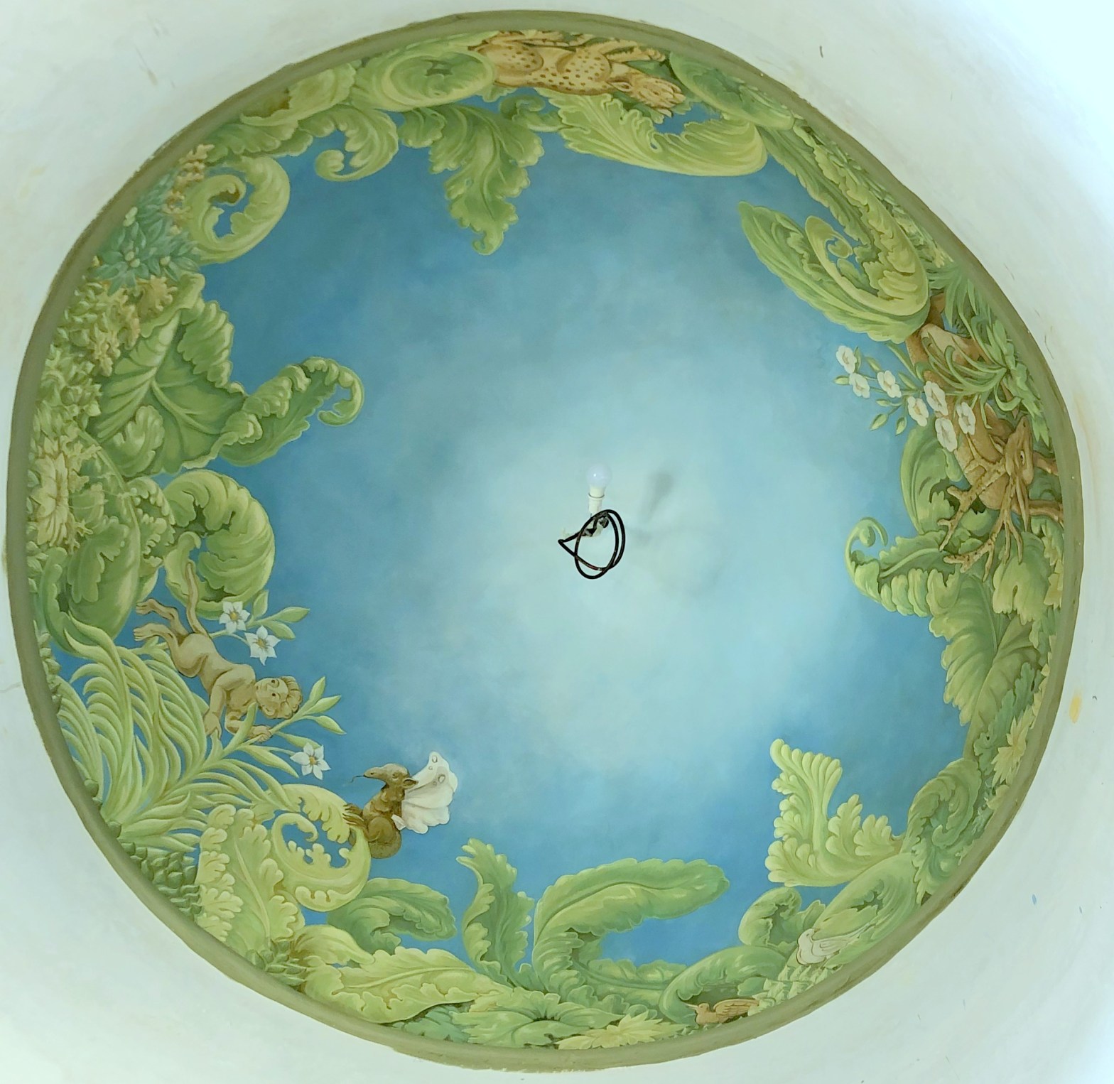 Conception et réalisation des plafonds peints en trompe l’œil de diverses salles et salons du château