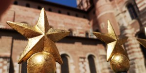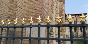 Dorure à la feuille des étoiles en ferronnerie des grilles de clôture de la basilique