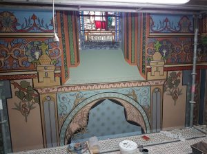 Restitution du décor de faux drapés du parterre du théâtre et de 4 loges à l’identique et en prolongement de l’existant.